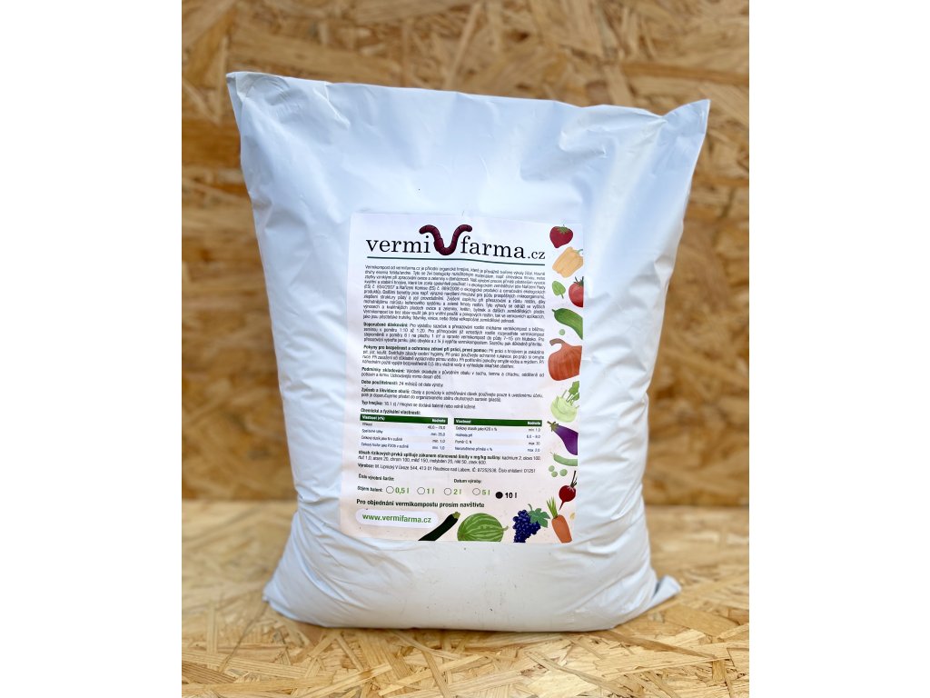 Vermikompost od vermifarma.cz je zcela přírodní organické hnojivo, které je převážně tvořeno výkaly žížal. Náš výrobní proces přináší pěstitelům vysoce kvalitní a stabilní hnojivo, které lze zcela spolehlivě používat i v ekologickém zemědělství. Náš vermikompost výrazně navyšuje množství pro půdu prospěšných mikroorganismů, zlepšení struktury půdy a její provzdušnění, což zvyšuje úspěšnost při přesazování a růstu rostlin, hlavně díky mohutnějšímu nárůstu kořenového systému a zelené hmoty rostlin.